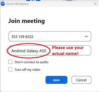 3. The meeting room ID is 353 159 6322 Type in your name in the Name field. We must be able to recognize you! We may kick you out of the class if we don't recognize your name!!